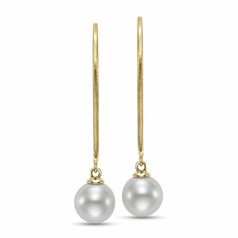 9mm Pearl & Brushed Gold Drop Earrings