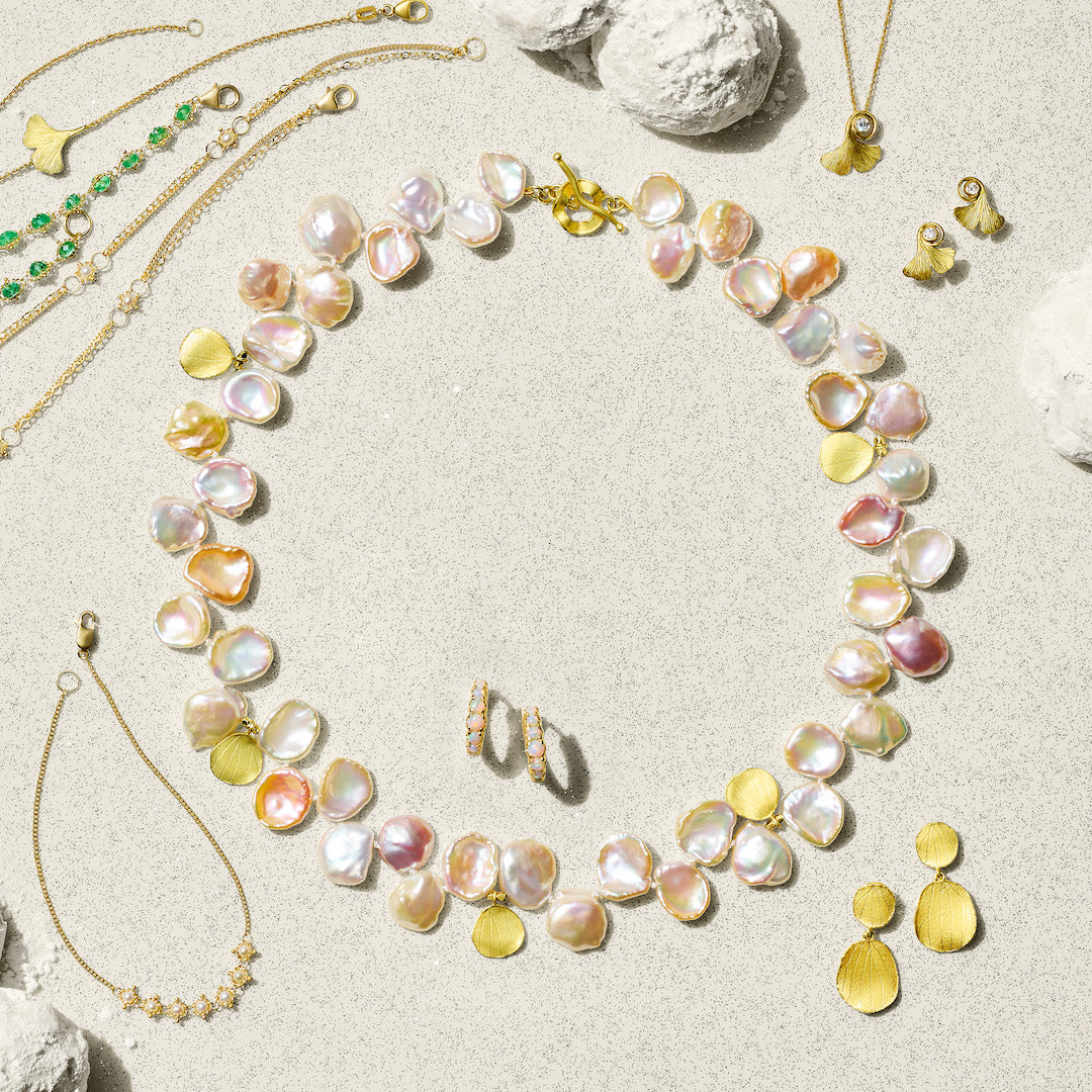 An extraordinary necklace featuring pastel freshwater pearls punctuated with gold hydrangea petals. A classically trained goldsmith, Barbara Heinrich is known for her contemporary designs, multi-textured finishes and use of vibrant gemstones. The award-winning jeweler draws inspiration from nature to create pieces that exude elegance and timeless beauty.