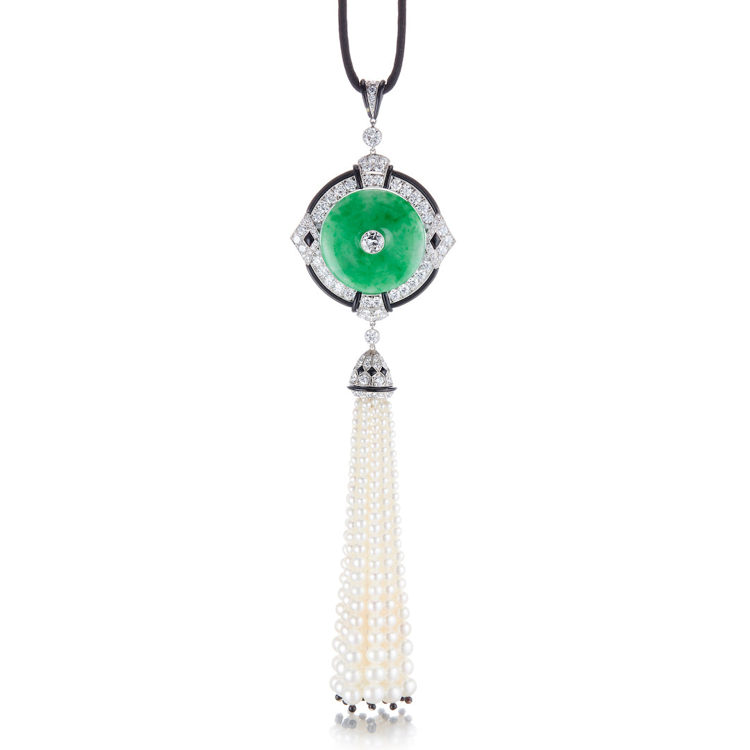 Cicada Jade, Diamond & Pearl Tassel Necklace