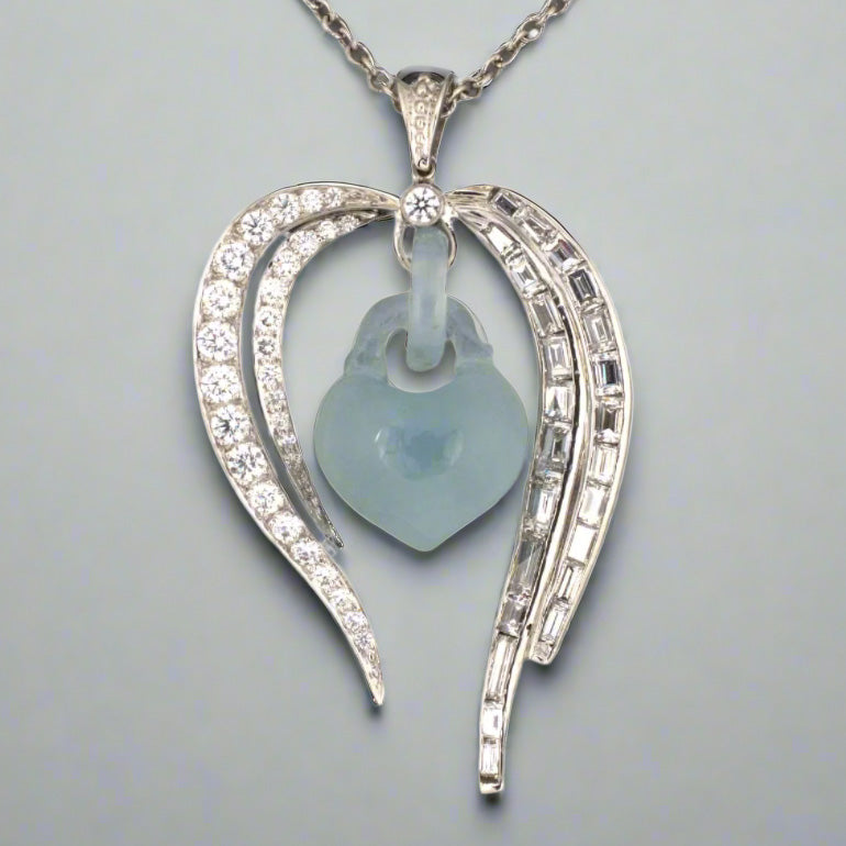 Diamond & Jadeite Bleeding Heart Pendant Necklace