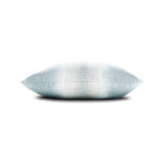 Softly blurred edges fade into a center panel of intricate chenille blocks on this pillow, where pale sky tones and subtle texture evoke the calm rhythm of shifting light.