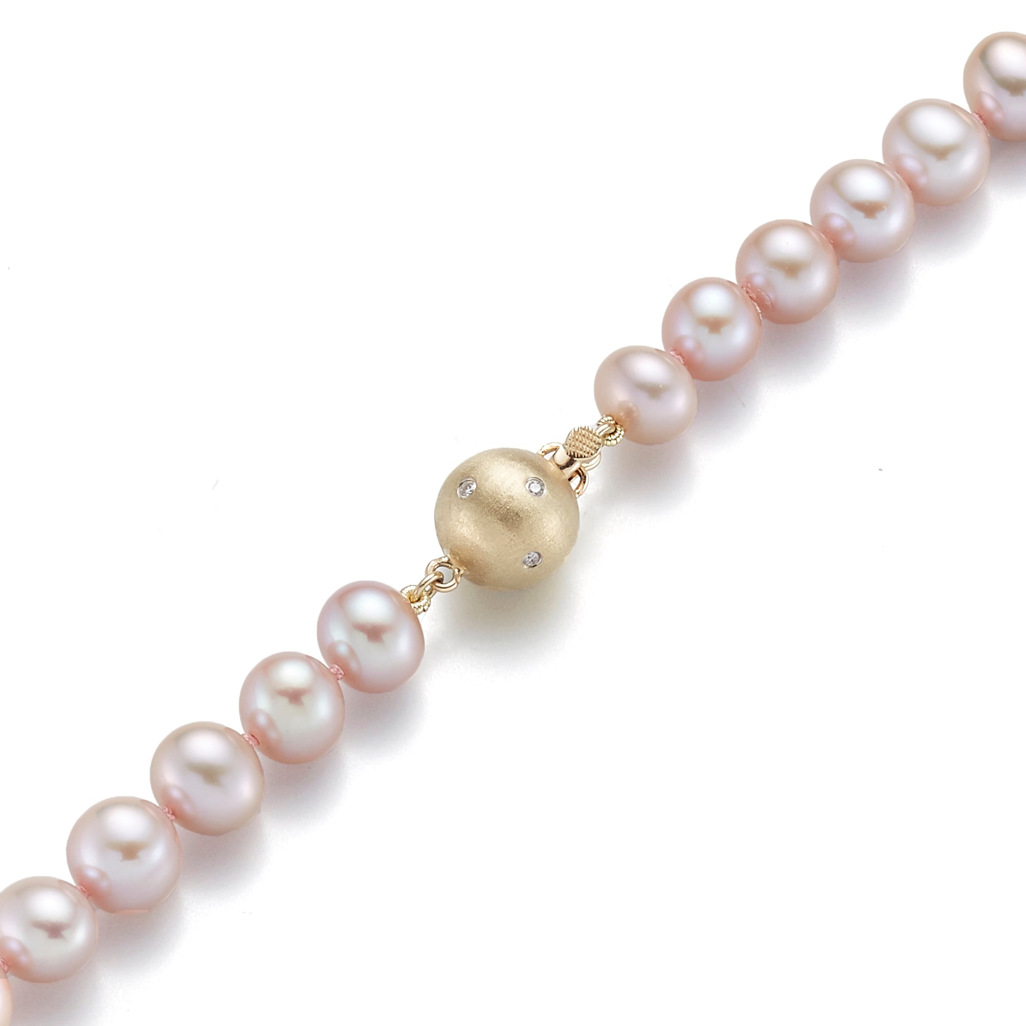 A fresh alternative to classic white, pink pearls are prized for their ability to flatter every complexion. Simple statements of elegance, pearls have been a mainstay in Gump's fine jewelry assortment for decades. Revered for their alluring luster and classic beauty, they are widely recognized as symbols of purity, integrity and wisdom gained through experience. To create this necklace, each pearl is carefully selected for quality, color and shape.