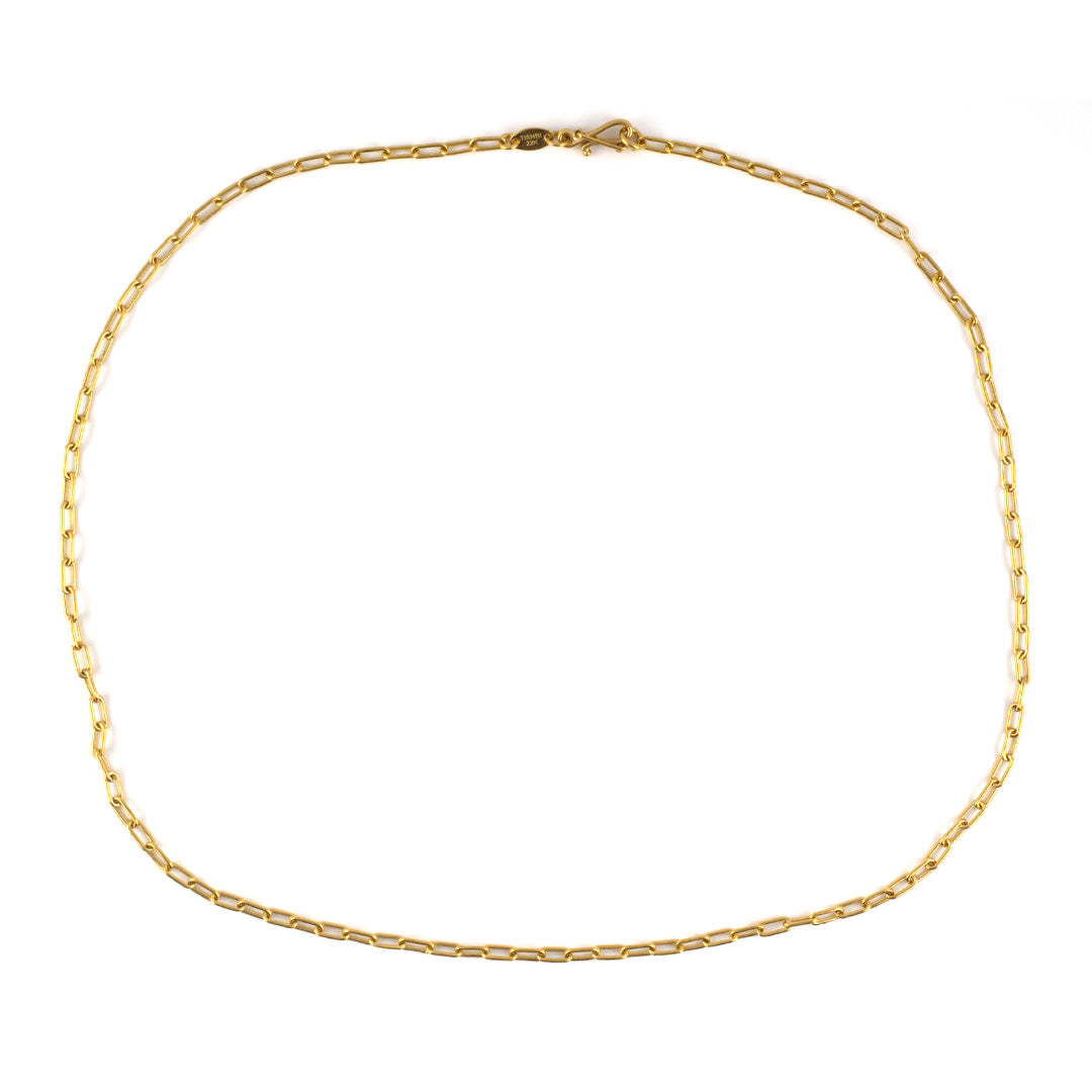 This handmade necklace is crafted in yellow gold with a series of oval cable links, each polished to a smooth, even finish. Its streamlined design emphasizes proportion and clarity, offering a classic form executed with artisanal care.