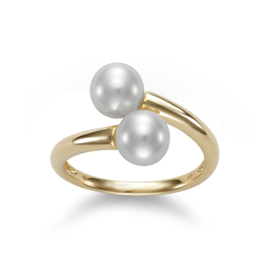 Nestled within a sleek gold setting, two lustrous pearls elegantly converge in this bypass ring, offering a modern twist on classic sophistication. Since 1861, Gump's has been a destination for jewelry that offers a lifetime of enjoyment. Featuring only the finest materials, each piece is a statement of pure elegance.