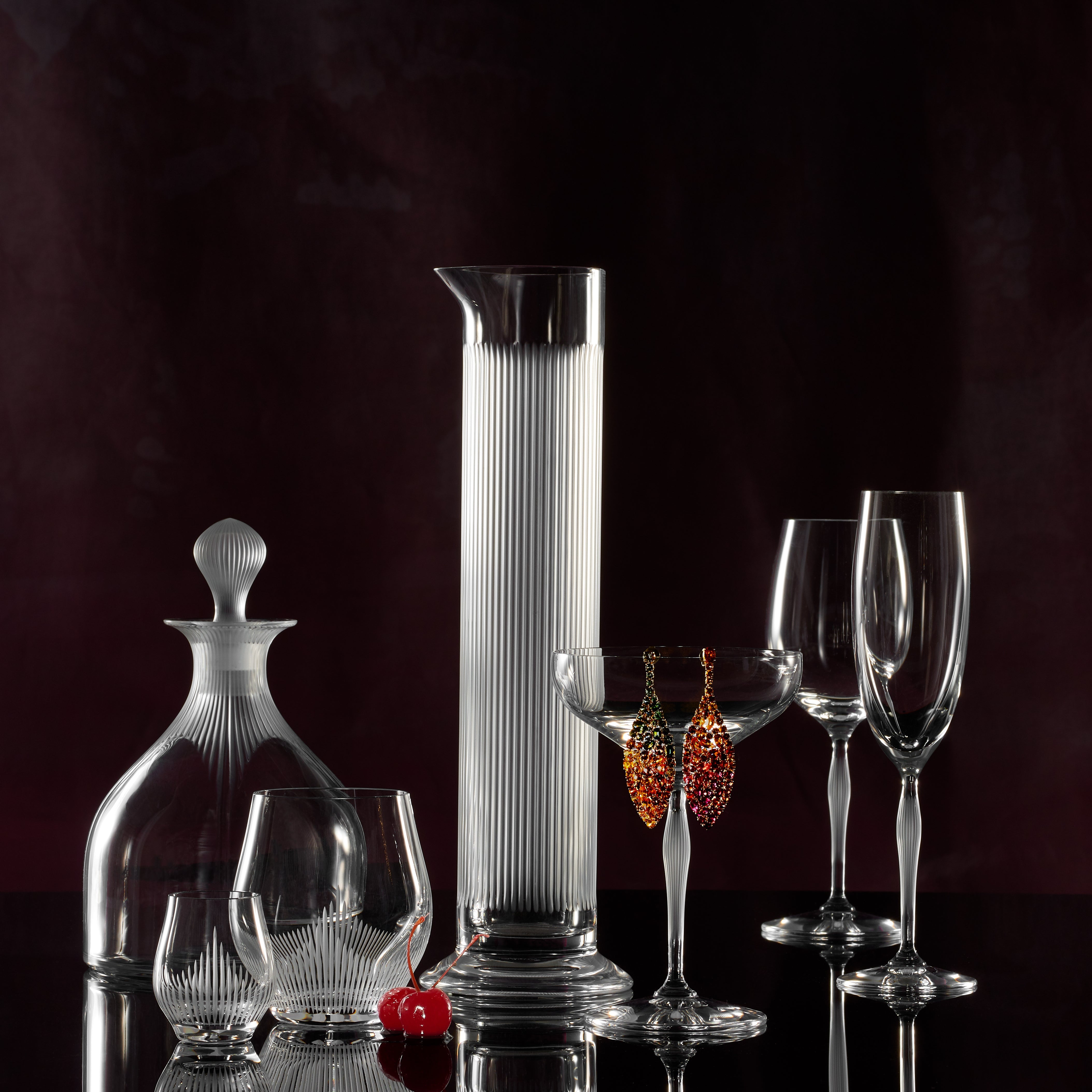 Referring to the wine scoring system, 100 Points is a handcrafted crystal collection that combines modern design with precise utility and exceptional style. René Lalique founded his firm in Paris in 1885, and soon became a celebrated Art Nouveau jeweler. In the 1920s, he developed a cutting-edge glassmaking technique that would become the foundation of this enduring brand. 8 3/4"H; 12.85 oz. Made in France.