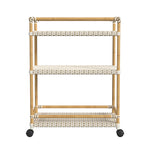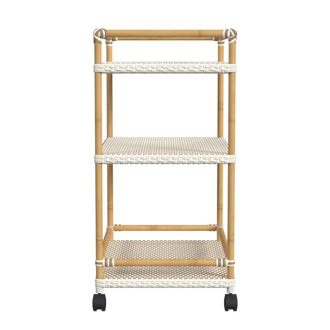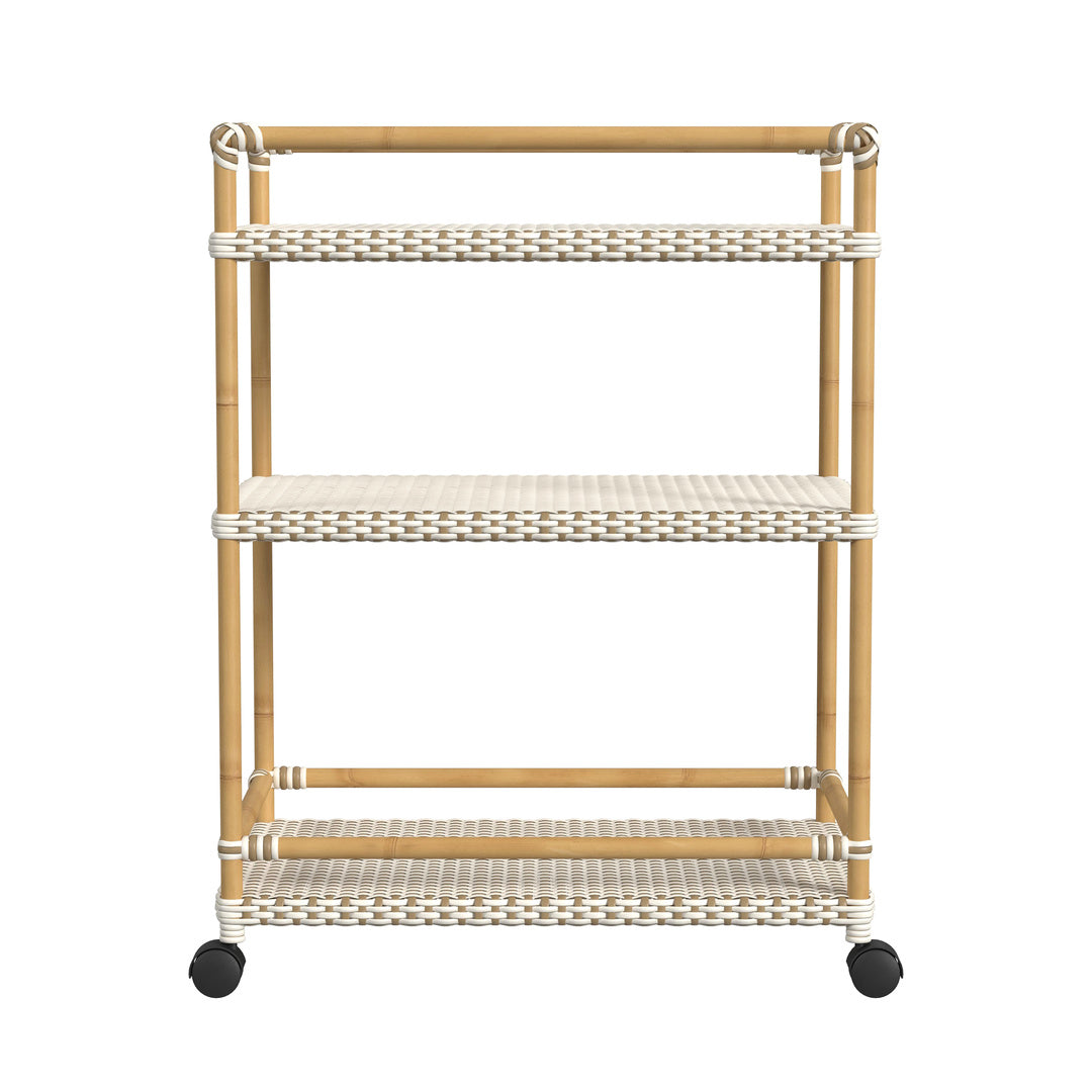 Inspired by the casual rhythm of Mediterranean sidewalk cafés, this bar cart pairs thick, bent rattan styling with a weather-resistant, handwoven surface over a lightweight aluminum frame. Finished with a protective top coat to resist spills and moisture, it’s equally at ease rolling through the kitchen or out onto the patio.