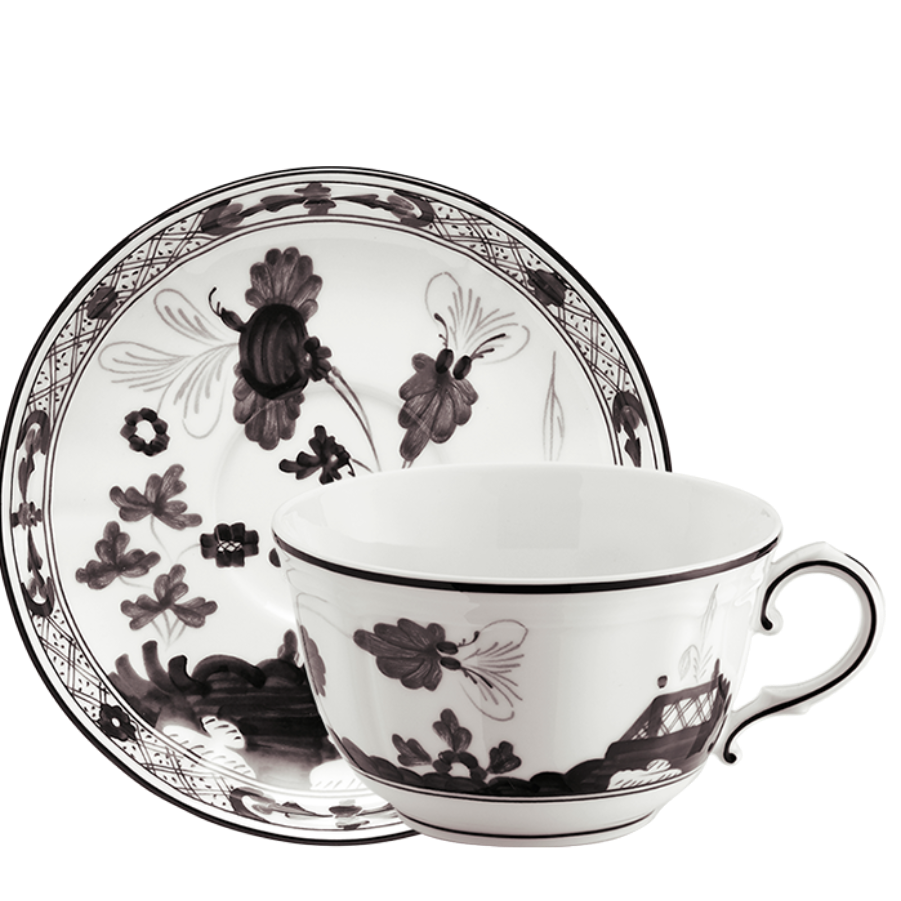 Designed by Gio Ponti in 1946, the Oriente Italiano collection brings together elements of East and West to brilliant effect. Stylized garofani, or carnations, blossom on handcrafted porcelain in a palette of black and white. Synonymous with fine Italian porcelain, Richard Ginori was founded in 1735 by a Florentine aristocrat and its collections have graced the tables of luxury liners, grand hotels and the Vatican, to name a few. Each piece is handcrafted in Italy, as it has been for nearly three centuries. 8 oz. Made in Italy. Hand-wash only.