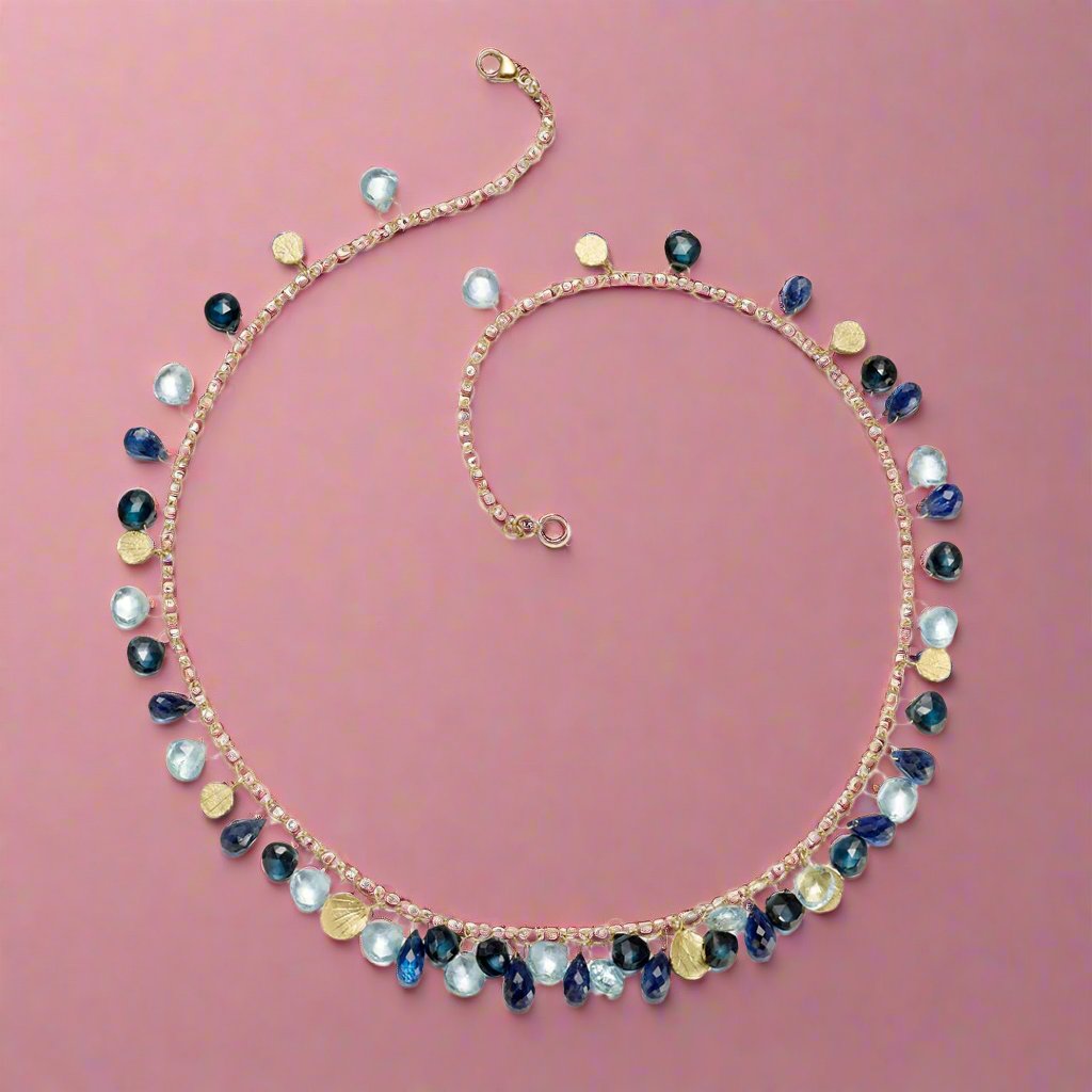 Blue Multi-Gemstone Briolette & Petal Necklace