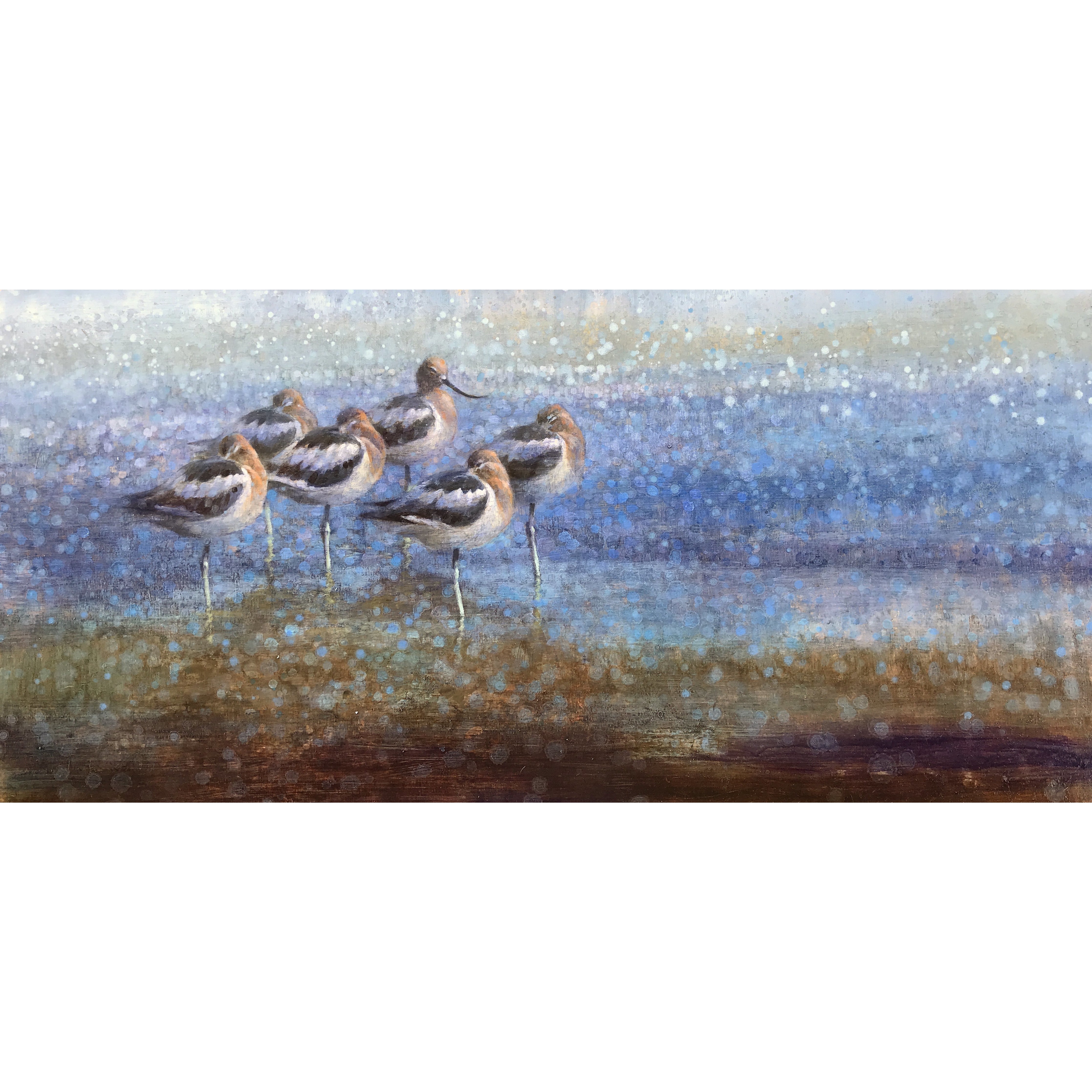 Although Ewoud de Groot (pronounced A-VOWED) lives and works in Egmond aan Zee, a coastal village in the Northern Netherlands, he is no stranger to 20th-century American artists, ranking Mark Rothko alongside a number of Dutch and Flemish painters who have informed his work. Finding inspiration in his surroundings while fly fishing in favorite Western locations, De Groot images offer refined composition and design paired with dreamy backgrounds. His painting style ensures he has multiple paintings in progress, a method that sparks creativity and cohesion, rather than distraction. Today, de Groot is recognized as a rising star in wildlife painting and has been a featured artist at the National Museum of Wildlife Art in Jackson, WY. Oil on Canvas. 27 1/2" x 55" (framed: 31" x 57 1/2"). Signed by the artist. 2018.