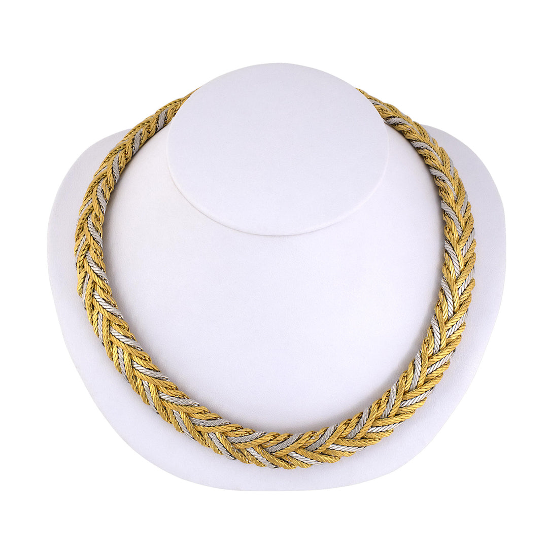 A Fiammato necklace designed by Buccellati featuring a wide woven herringbone design in 18-karat yellow and white gold. Gump’s is forever treasure hunting for the best of everything and our collection of estate jewelry — featuring rare antique pieces — is no exception. Distinguished in provenance, each item is one of a kind, reflecting its distinctive gemstones, materials and craftsmanship.