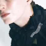 A stunning brooch that features four parallel rows of graduating silver beads, slightly arched on one side. The design in recycled sterling silver is part of the collaboration between Georg Jensen and Danish design brand A. Roege Hove. The capsule collection is born from a union of two crafts: Georg Jensen's outstanding expertise in metalwork with A. Roege Hove's innovative approach to the art of knit. The design includes a needle to secure the brooch on any form of clothing.