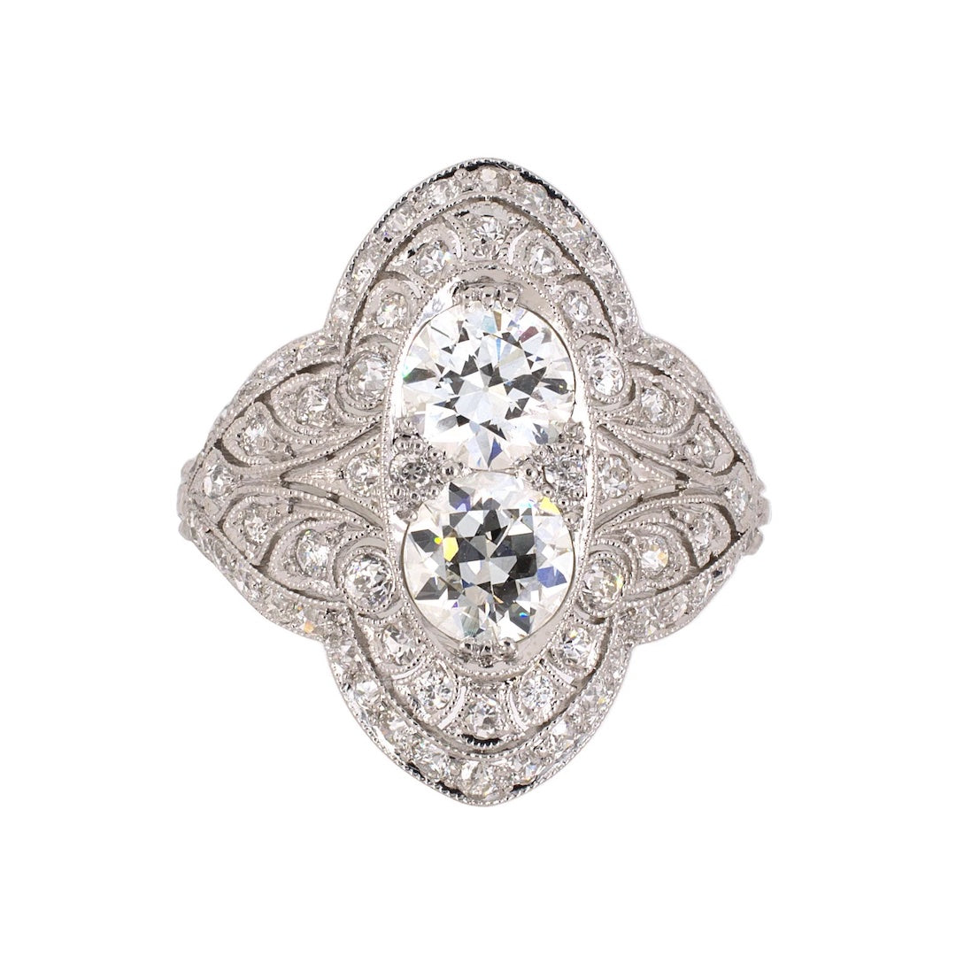 Estate Edwardian Diamond 2-Stone Dinner Ring