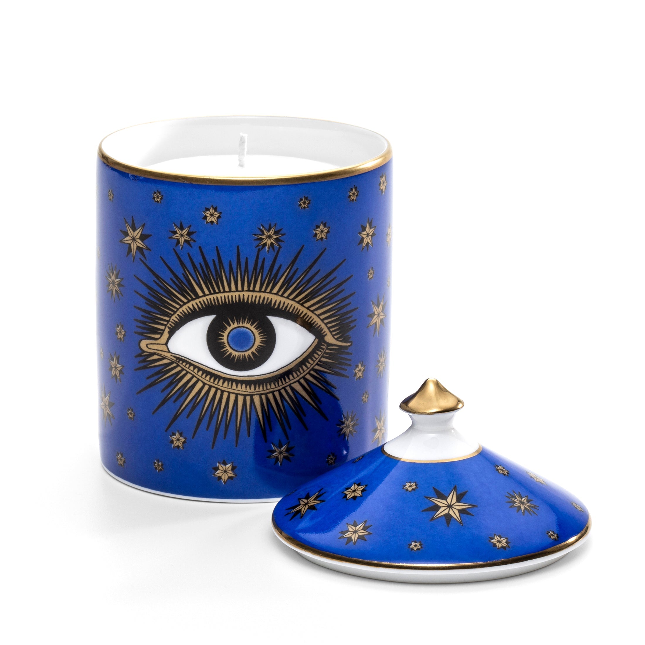 Legend has it that the evil eye helps to protect you from evil forces. To be on the safe side, keep this candle close at hand to ward off those malevolent spirits. This lidded fine bone china vessel features a hand-poured wax candle infused with a delicate jasmine scent.