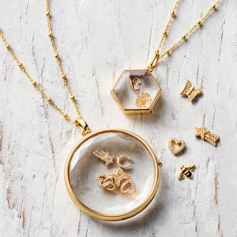 A London-based fine jewelry concept founded by Sheherazade Goldsmith and Laura Bailey, Loquet is a modern approach to the timeless idea of a keepsake locket. Inspired by their own life experiences and travels, each charm serves as a bespoke gift, a precious memento, a love letter. Place your favorite charms in the clear sapphire-crystal faced locket and create a story that's entirely your own.