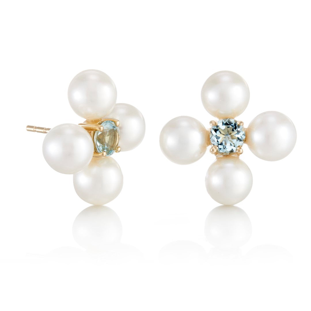 Our enchanting earrings capture the essence of a blooming garden while showcasing the natural beauty of freshwater pearls and the vivid brilliance of aquamarines.