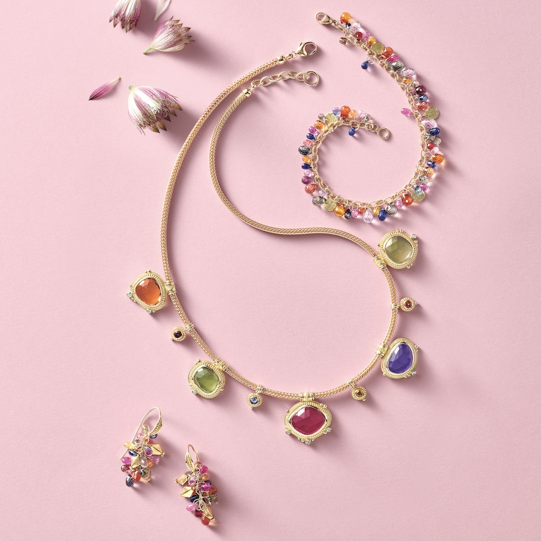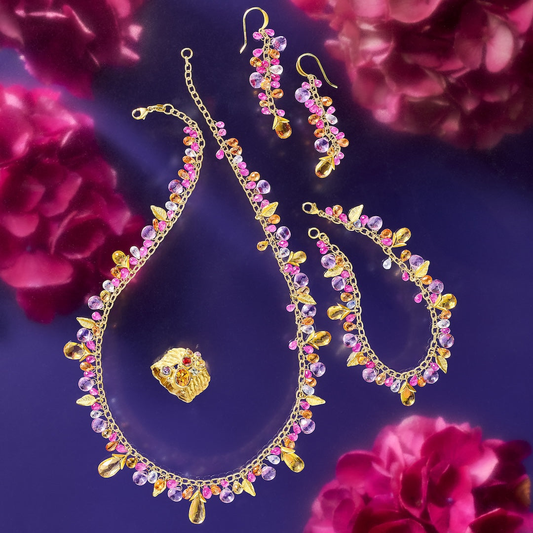 A delicate balance between hard geometric lines and flowing organic shapes, Barbara Heinrich jewelry pieces require skilled hand burnishing and highlighting to execute her signature details.