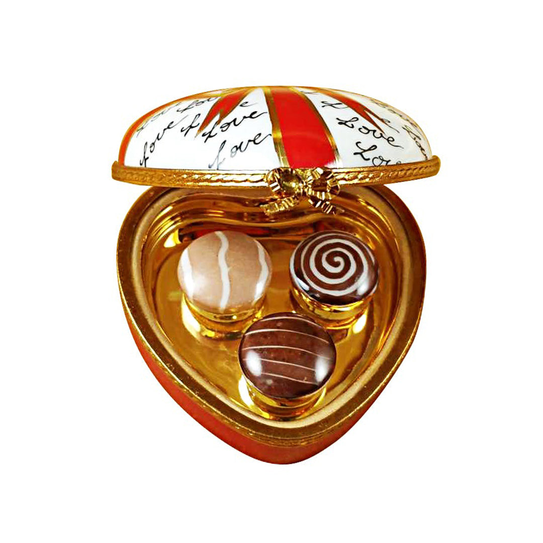 Limoges boxes come in an array of shapes and designs — from the witty and fanciful to the elegant and refined. Made from the pure white porcelain that’s produced only in Limoges, France, this diminutive collectible is crafted and painted by premier artists using many of the same techniques used since the 17th century. Open the heart box to reveal three removable porcelain candies hidden inside.