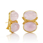 Polished kunzite cabochons are stacked in soft symmetry, framed by warm gold bezels and a twist of rope detailing. The pairing of gentle color and bold form gives these earrings a quietly sculptural presence. Since 1861, Gump's has been a destination for jewelry that offers a lifetime of enjoyment. Featuring only the finest materials, each piece is a statement of pure elegance.