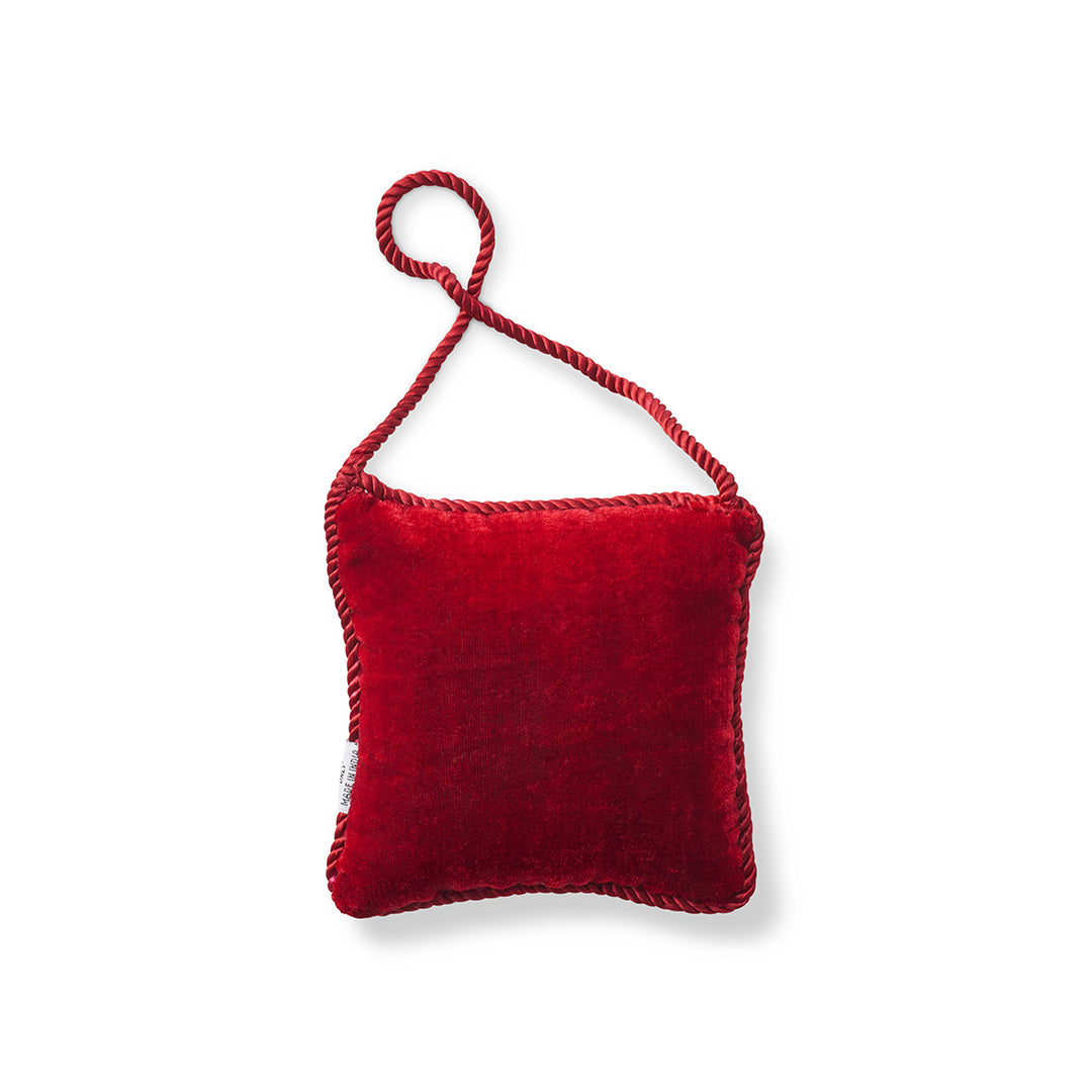 Velvety red and hand-embroidered with gold metallic thread, our festive door hanger glimmers with regal charm. Embellished with a jeweled crown, it’s a radiant way to welcome holiday cheer.