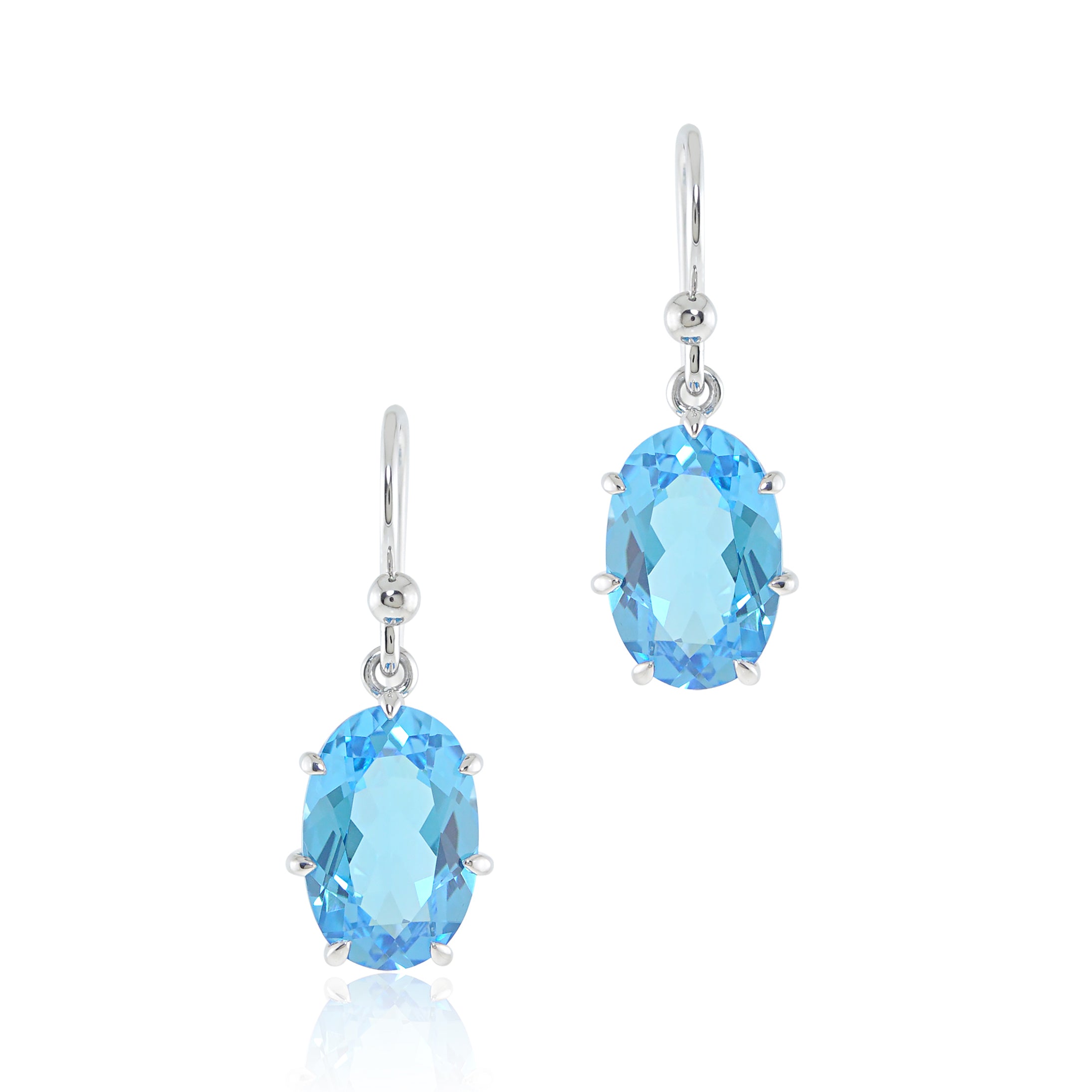 Gracefully swaying with your movement, our drop earrings are set with Swiss blue topaz that sparkle when they catch the light.
