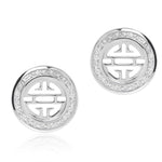 A symbol of long life and prosperity — and a signature motif for Gump's — a Chinese shou surrounded by dazzling white topaz define our timeless sterling silver earrings.