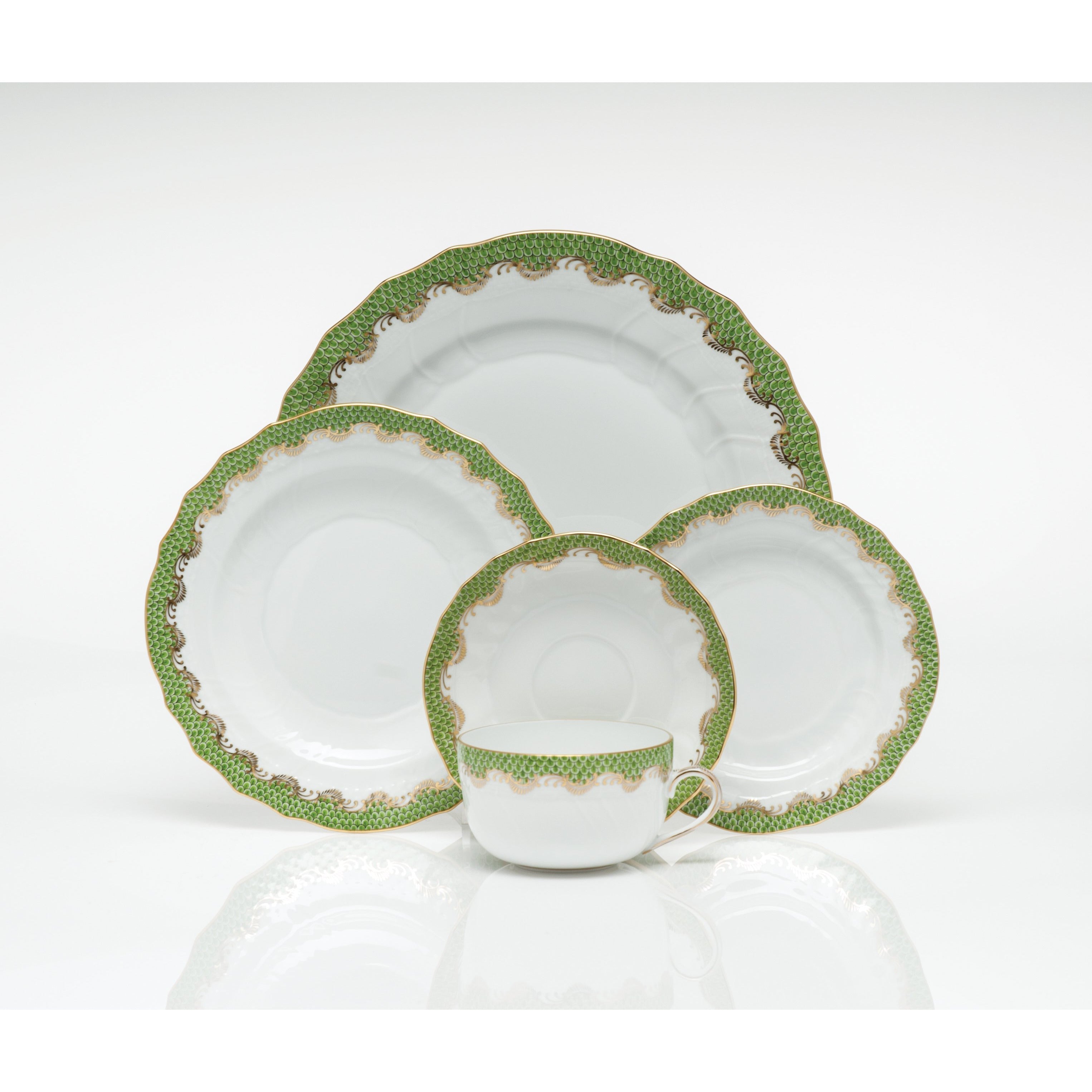 Fish Scale Canton Teacup, Evergreen