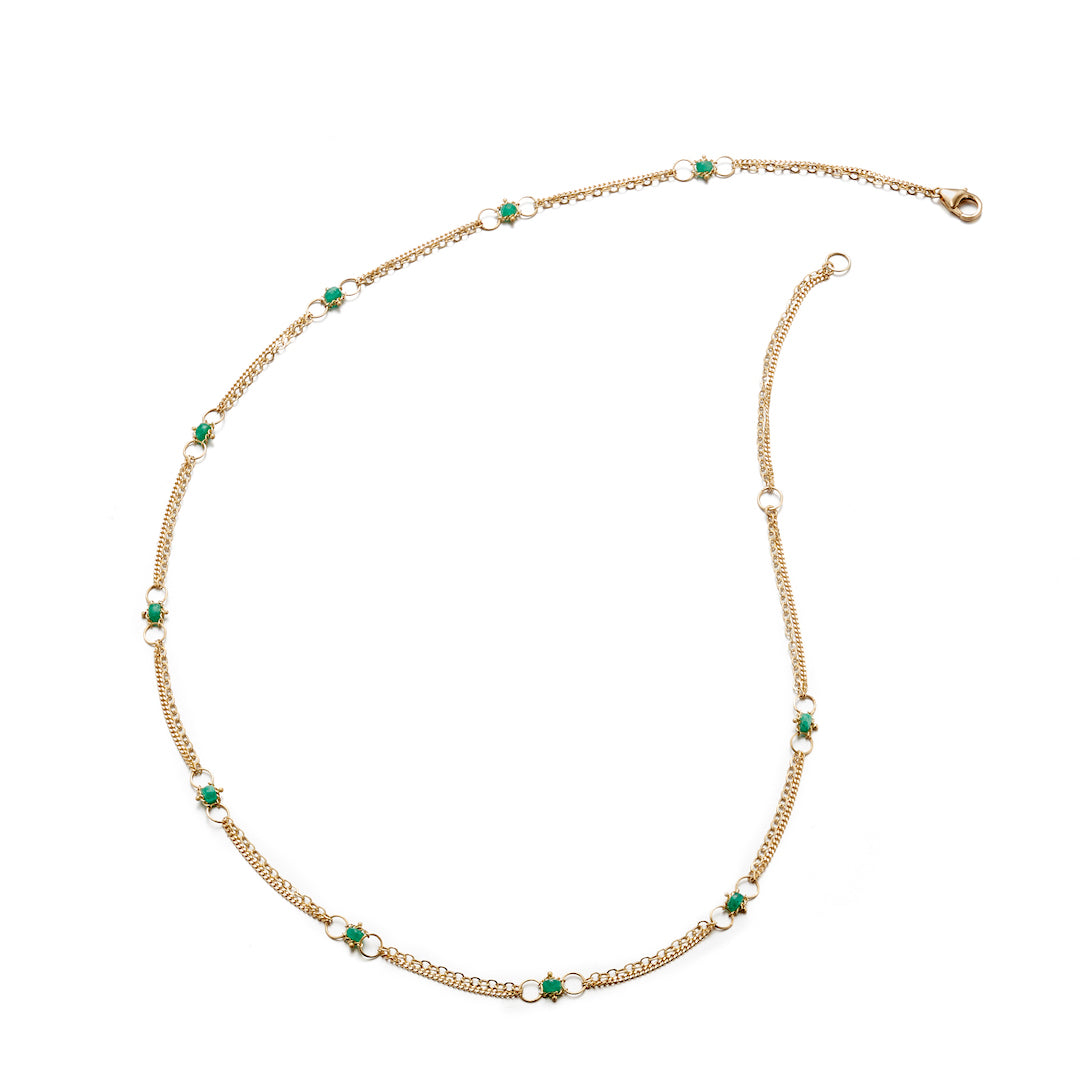 They say emeralds bring prosperity and abundance to the wearer — so why not send someone the gift of good fortune? This graceful necklace showcases the beauty of emeralds by encircling them with gold and then connecting them with handwoven strands.