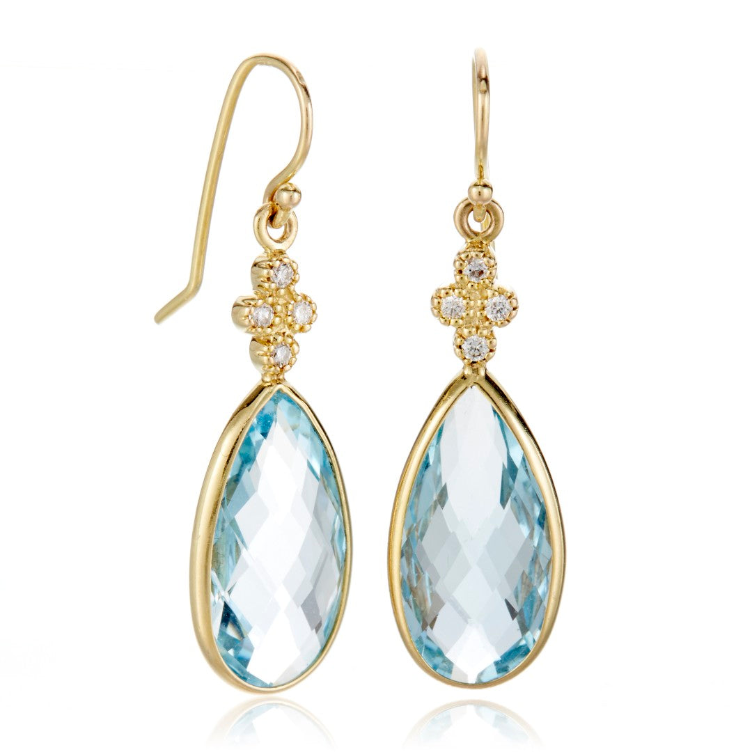 Our earrings artfully pair Swiss blue topaz with diamond accents, presenting a radiant harmony of light and color that captivates from every angle. Since 1861, Gump's has been a destination for jewelry that is distinctive and extraordinary. Featuring only the finest materials, each piece offers a lifetime of enjoyment.