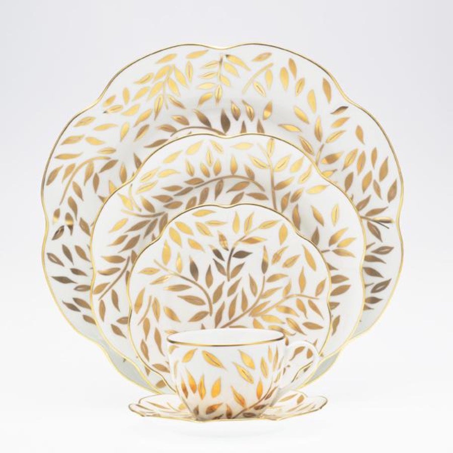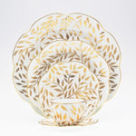 Made of white porcelain, this distinctive scalloped dessert plate features a 24-karat yellow gold foliage motif inspired by the beauty of olive groves across the Mediterranean. Founded in 1797 and one of the oldest existing porcelain manufacturers in Limoges, France, Royal Limoges uses centuries-old techniques paired with advanced technology to produce exceptional tableware.
