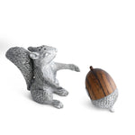 We're simply nuts about our sassy squirrel, part of a whimsical salt & pepper set that's sure to add spice and style to your table. Handcrafted of pewter, delicately detailed and finished by hand, he serves as a shaker while offering up a wooden acorn with pewter cap to be used as a cellar.