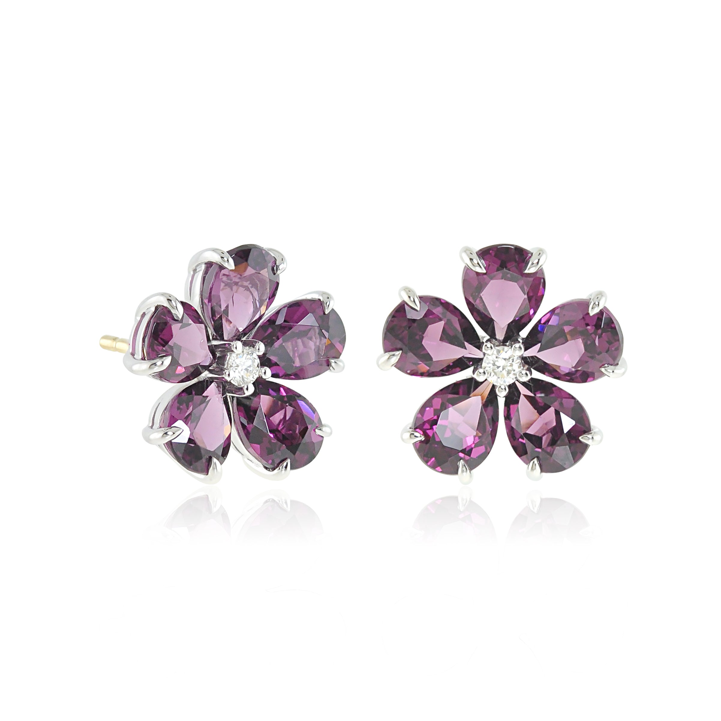 Redefining flower power, our floral earrings feature petals of rhodolite garnet and a diamond pistil.