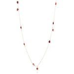 Alternating between fixed and freely dangling garnets, this long gold necklace invites a second look. The contrast in movement brings quiet intrigue to each teardrop, enhancing the warmth of their rich red hue.