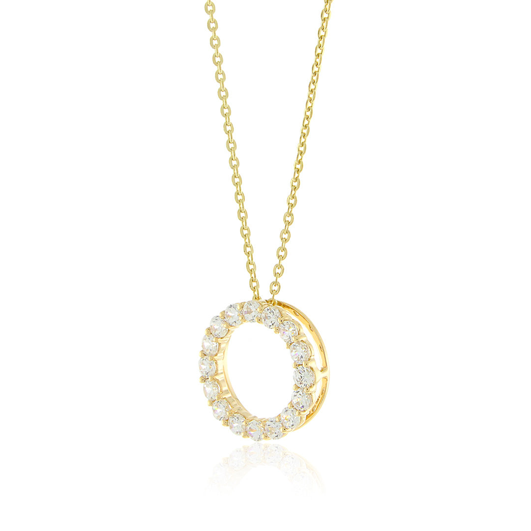 Our necklace showcases a continuous loop of shimmering diamonds, meticulously set in a golden frame to create a radiant and striking piece.