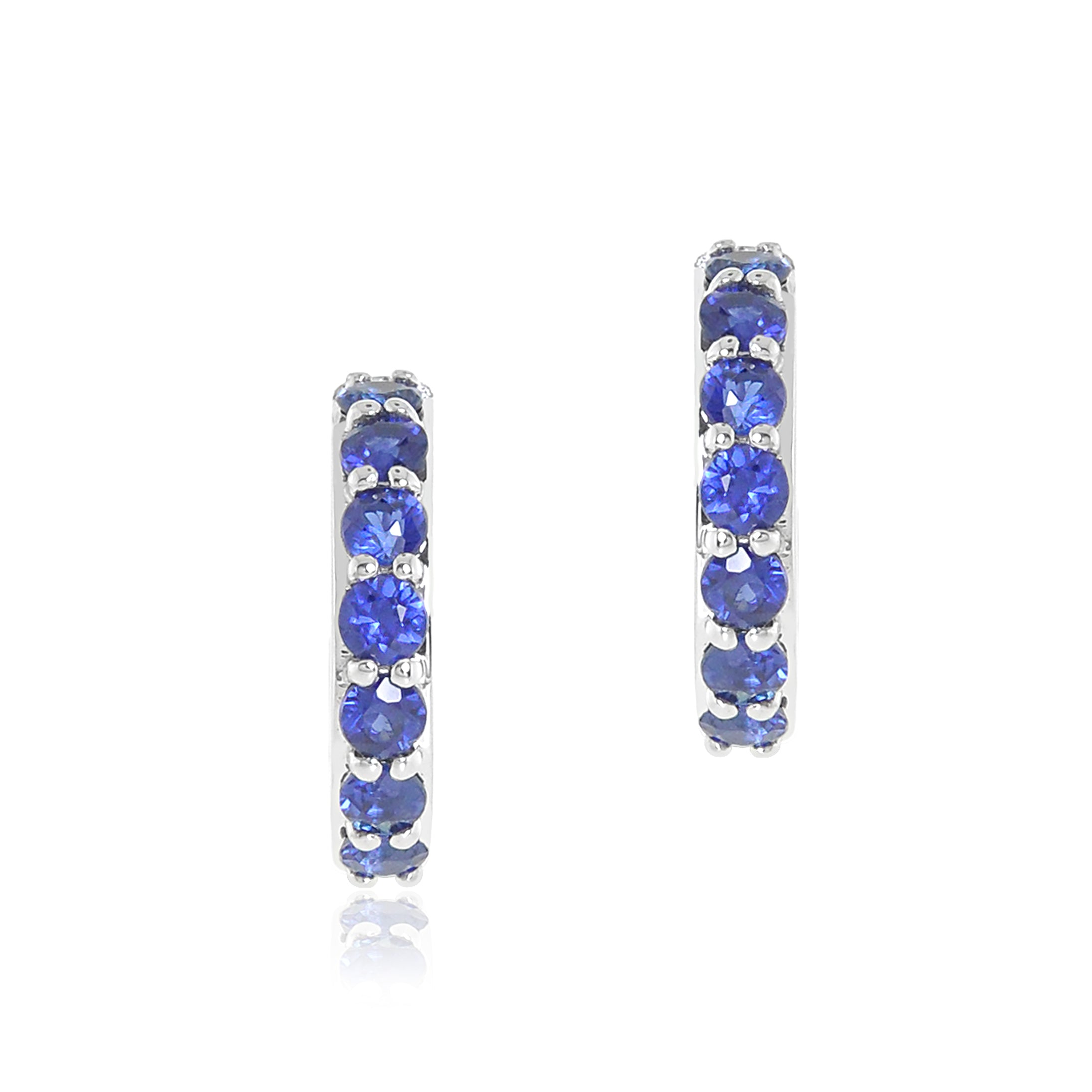 White Gold Huggie Hoop Earrings in Sapphires