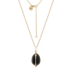 A smooth, oval cabochon of deep black jade is framed in warm gold and suspended beneath a diamond-set bail. With its refined profile and minimal detailing, it defines quiet luxury.