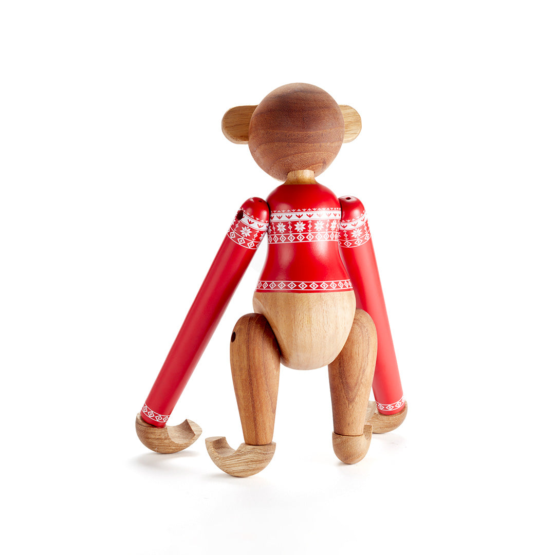 With its ever-smiling face and classic red Christmas sweater, Kay Bojesen's world-famous design icon and our cosy yuletide season are woven even closer together — and is sure to bring added joy to the holidays. In 1951, Danish designer Kay Bojesen wanted to design a coat rack for a children's furniture exhibition — the idea behind the monkey was that the long arms would bring the coat hook down to child’s height, and the short legs would make room for a hat and scarf. Today, this monkey is merely an enchanting animal that will spark the imagination of the young — and the young at heart. It consists of 31 individual parts, made from Limba, an African hardwood, and sustainable teak wood. Thanks to the natural grain and color of the wood, each one of the wooden animals is unique.