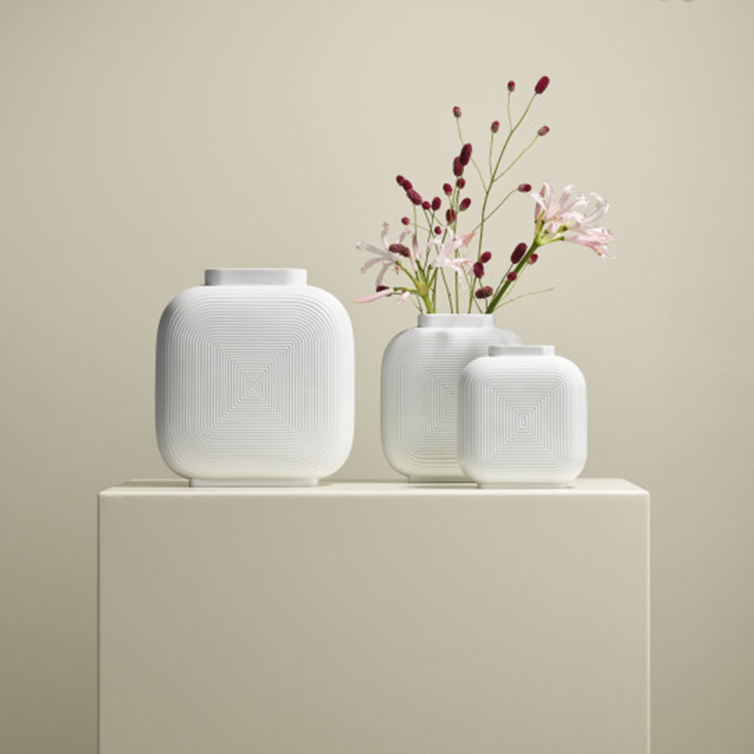 With its luxurious satin finish and clean, geometric design, this distinctive vase has both elegant and contemporary appeal. The pure white works with any interior and can be beautifully showcased either as a standalone piece, in combination with other vases or displayed with your favorite bouquet of flowers. Handmade by Fürstenberg, a renowned German porcelain-maker with more than 275 years of exceptional craftsmanship.