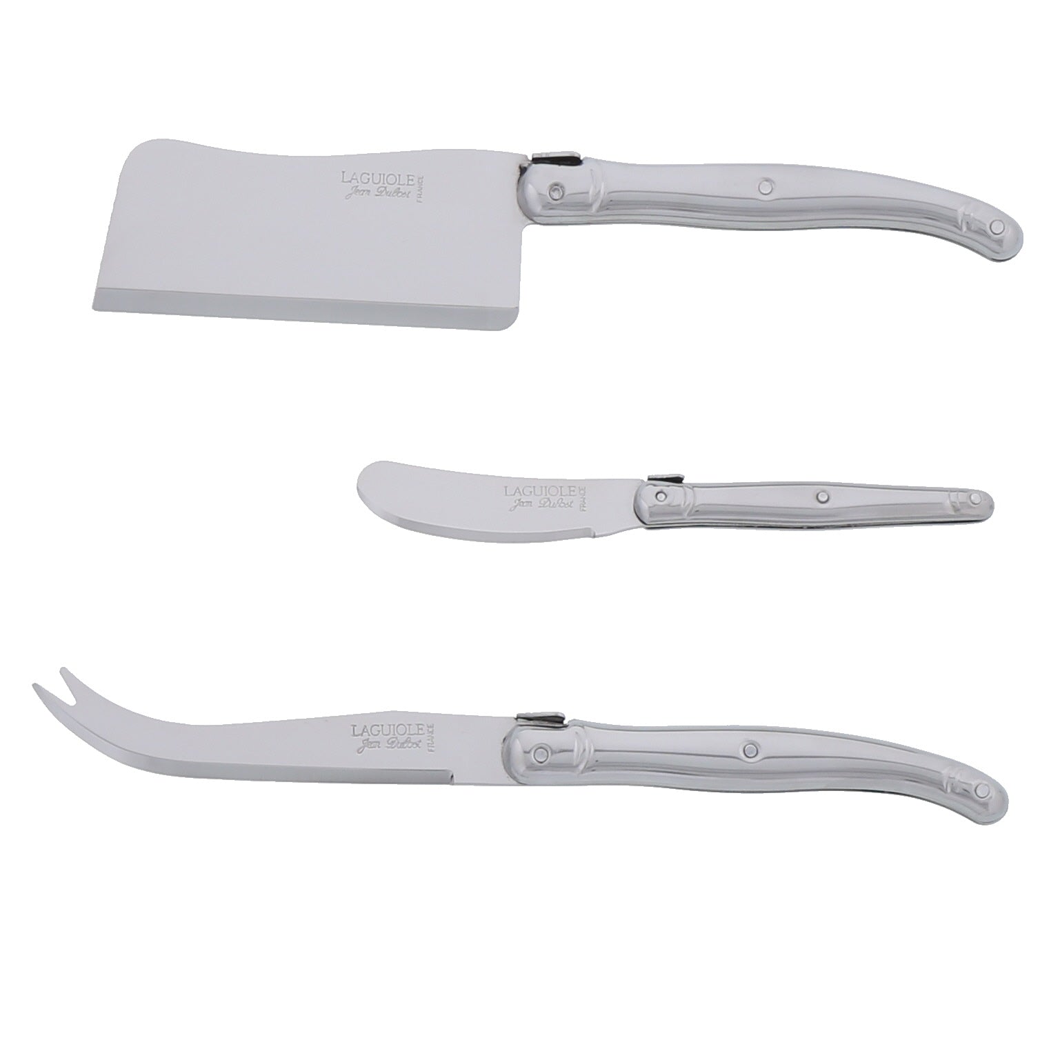 For nearly a century, the French company that handcrafts these utensils has merged artistry and function with remarkable skill. Each stainless steel blade is specifically shaped for different types of cheese: the cleaver for hard cheeses, the knife for soft cheeses and the spreader for melted cheeses.