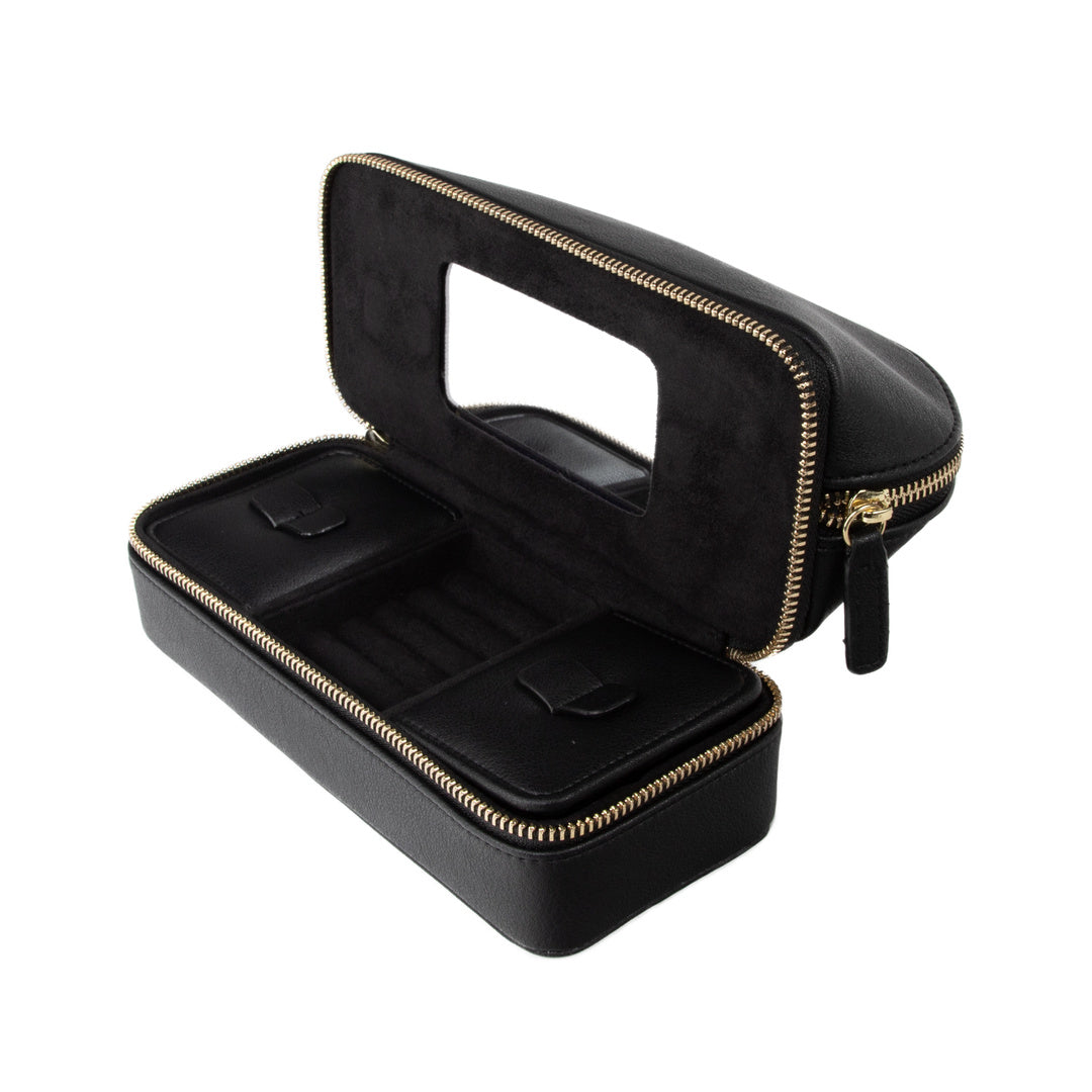 Our travel case is a perfect blend of practicality and style, whether you’re treating yourself or gifting it to someone who loves to stay organized on the go. With two handy compartments — one for everyday essentials and another for your jewelry — it’s designed to suit the needs of the savvy traveler. Made from durable faux leather that's both chic and built to last.
