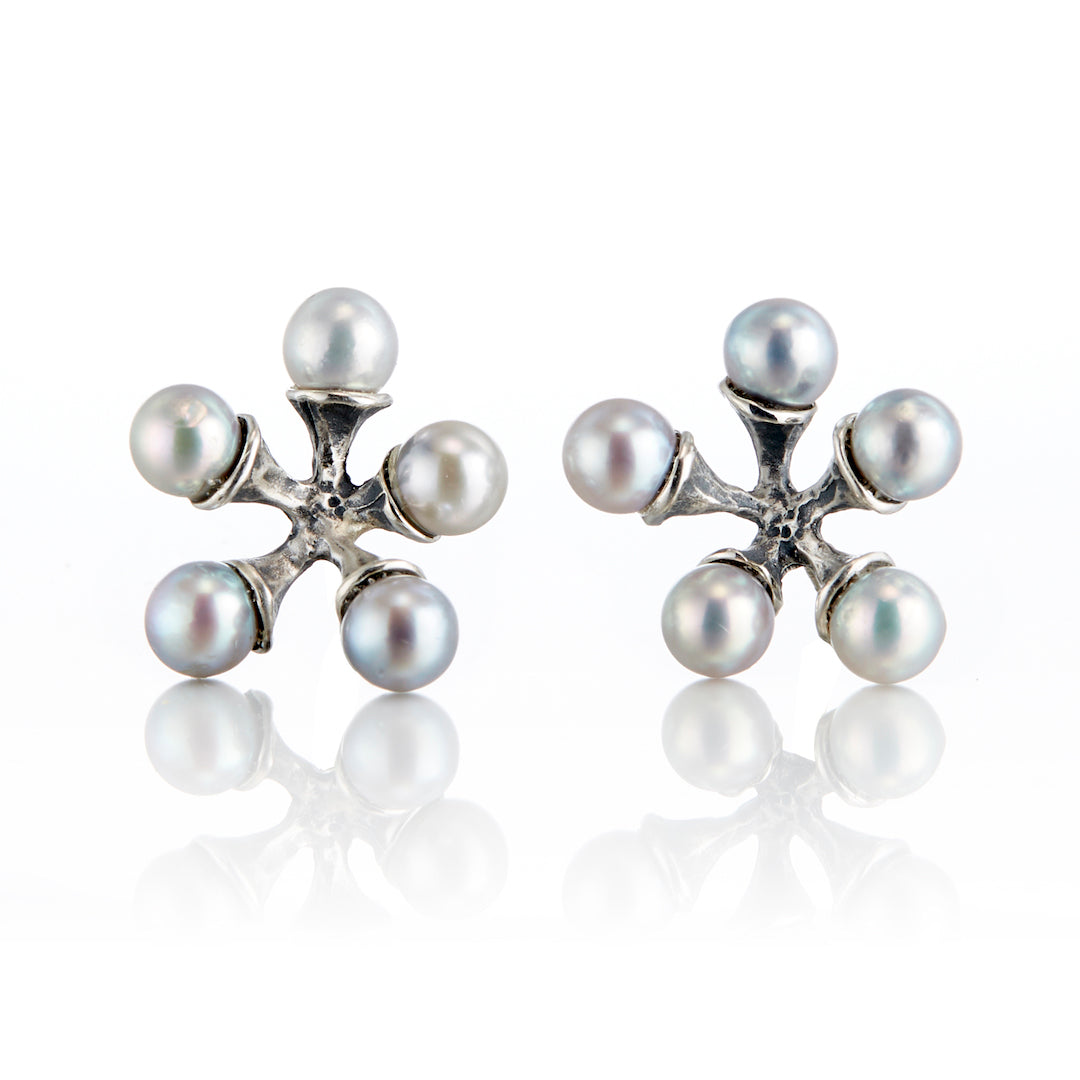 John Iversen Light Silver Akoya Pearl Micro Jack Earrings