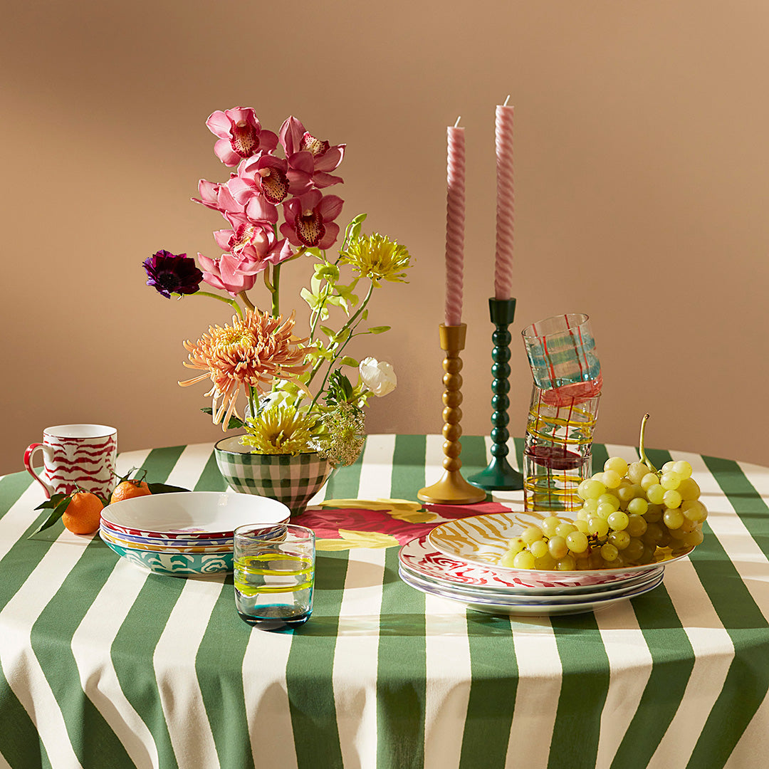 Blending Italian artistry with Indian craftsmanship, Lisa Corti creates a richly layered world where color, culture and tradition meet. From vibrant cotton table linens to hand-finished porcelain pieces, every piece captures a sense of effortless sophistication — timeless, artful, and deeply personal. The family-run brand is now led by Lisa’s daughter, Ida, who continues the legacy with a fresh, modern spirit.