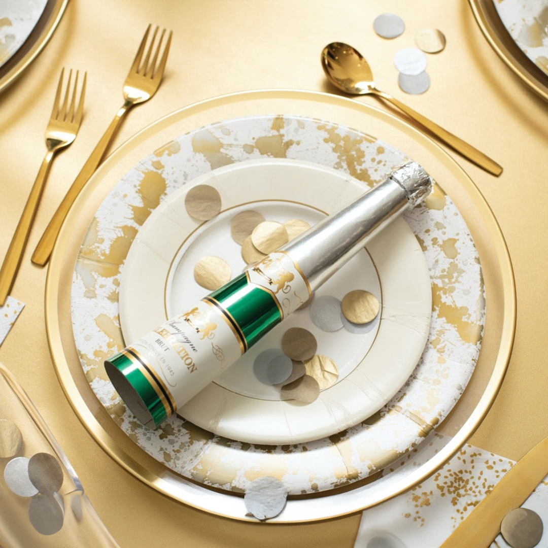 Guests are sure to delight in your distinctive table settings adorned with champagne bottle crackers. A festive holiday tradition since Victorian times, each pulls open with a lively pop to reveal charming surprises inside.