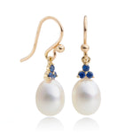 Made of yellow gold, these freshwater cultured pearl drop earrings are embellished with sparkling sapphires. The timeless design provides an elegant touch to any attire. Freshwater cultured pearls, 9.5x10mm. Sapphire, 0.23ctw. 14-karat yellow gold. Pierced only. 1"L