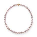 A timeless necklace of luminous pink freshwater cultured pearls with gold and diamond clasp. A fresh alternative to classic white, pink pearls are prized for their ability to flatter every complexion. Pink freshwater cultured pearls, 8.5mm. Diamonds, .036ctw. 18-karat yellow gold. 17"L.