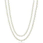 Our rope necklace pairs the luminous glow of white freshwater pearls with the allure of crisp green peridots, creating a striking contrast that's both chic and captivating.