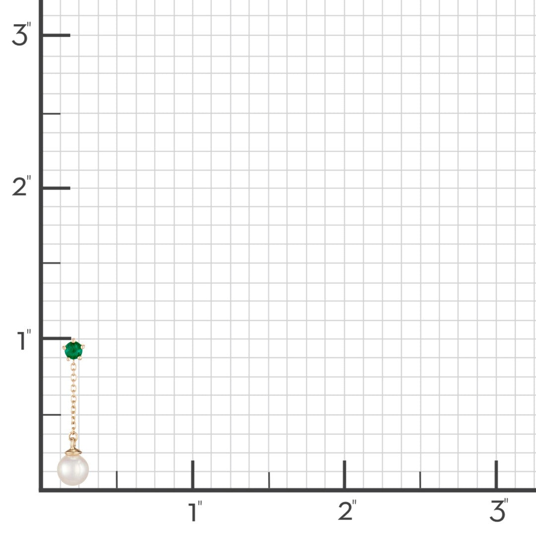 A white freshwater pearl cascades down a delicate golden chain from a emerald stud, mirroring the mesmerizing beauty of a waterfall.