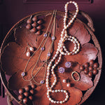 We offer complimentary gift packaging — a signature gold-lidded gift box with hand-tied satin ribbon — on all jewelry orders.