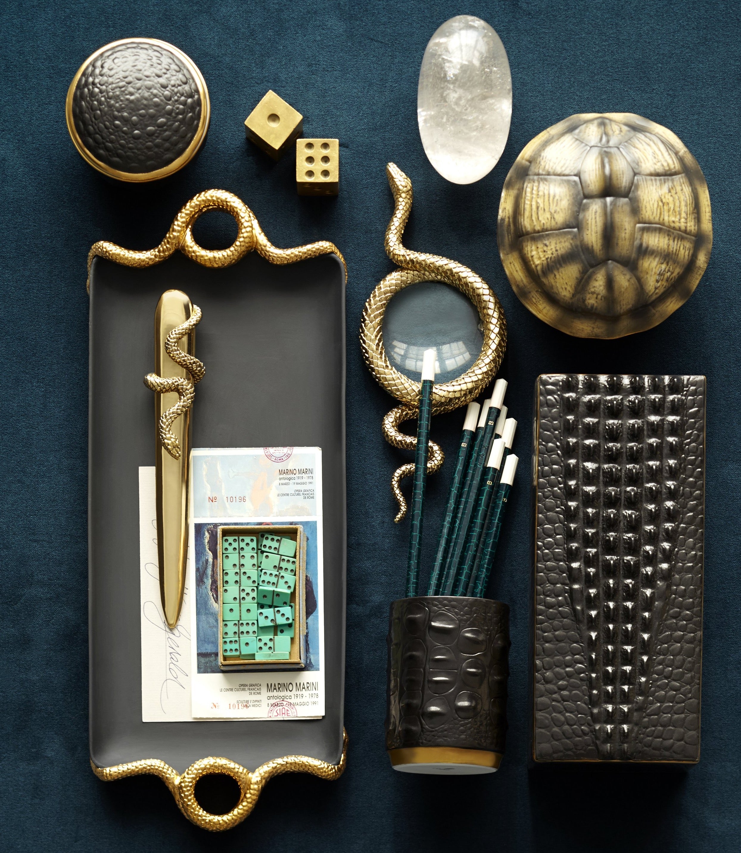 Rich in texture, this scaly metal snake desk accessory is meticulously handcrafted and finished with 24-karat plating for luxurious detail. Founded in 2004 by former interior designer Elad Yifrach, L'Objet is renowned for its exquisitely handcrafted products that are as luxurious as they are functional.