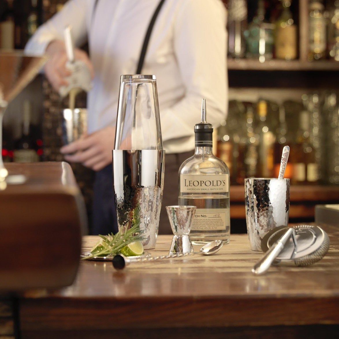 One of Robbe & Berking's best-loved collections, handcrafted Martelé barware features classic silhouettes in exquisite silverplate, and a modern mix of polished and textured finishes. The delicately hand-hammered jigger pairs 1.5-oz. and 1-oz. measures, making it the ideal bar tool for your favorite mixologist. Since 1874, family-owned Robbe & Berking has refined and perfected the art of silver-making and metalsmithing, passing this knowledge down from generation to generation. Handcrafted cutlery and tableware with the R&B hallmark are prized by experts and collectors around the world. Made in Germany. 10 1/2" long x 1 1/2" wide; 1.5 oz./1 oz.
