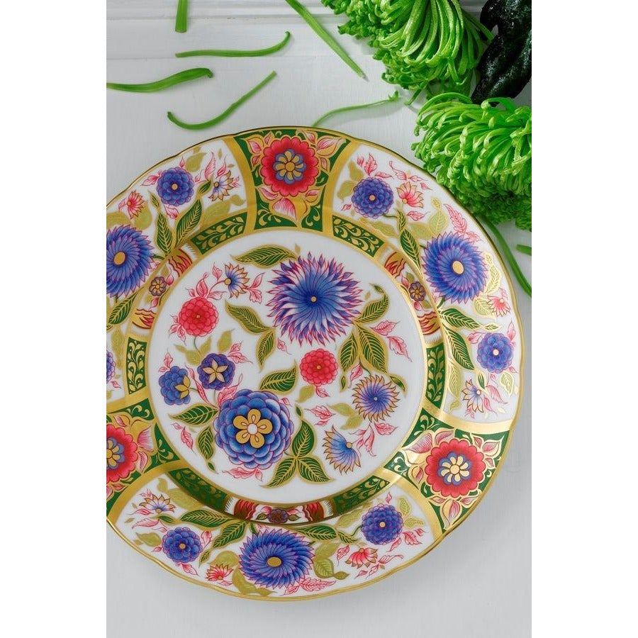 Designed by Tien Manh Dinh, this porcelain plate's exquisite floral motif draws inspiration from Japanese textiles and the vibrant colors of mid-summer. Established in 1750, Royal Crown Derby is renowned for the unrivaled quality of its tableware made exclusively in the U.K. 8" diam.